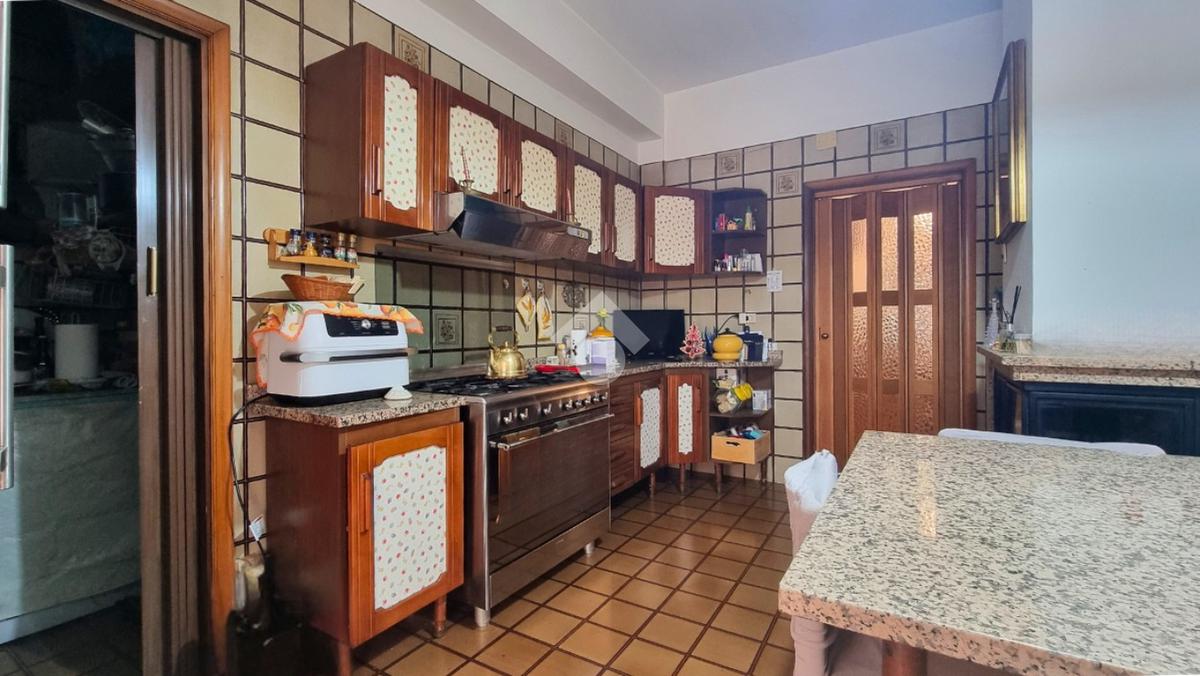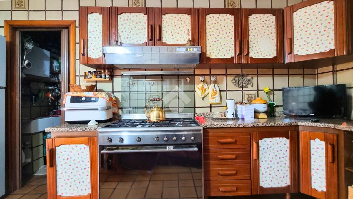 La distribuzione interna dell'abitazione prevede un ingresso che conduce alla cucina abitabile con camino e al soggiorno, oltre a un disimpegno che introduce alla zona notte. La zona notte è composta da tre camere da letto una singola, una matrimoniale e una doppia, e da due bagni entrambi finestrati e uno con vasca.